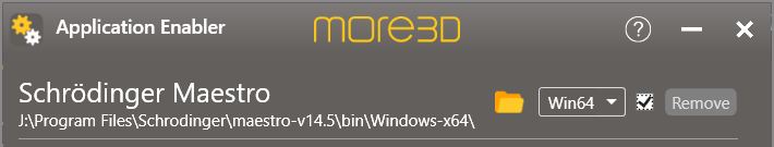 - Click “Locate known Apps”. The more3D application enabler will search the standard program files folders for known Schrödinger Maestro installations and add them to the list.