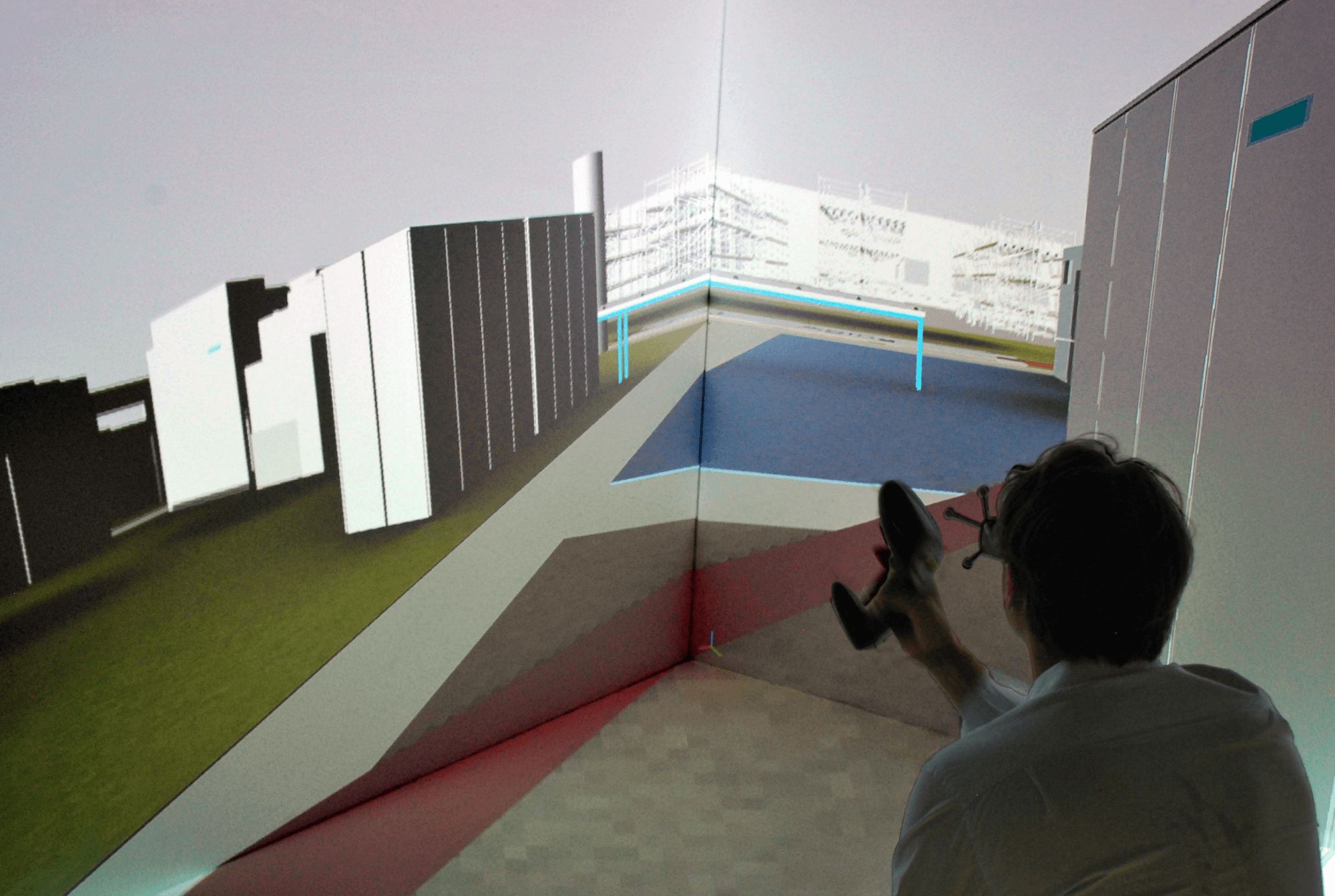 Four-sided projection (front, floor, and both side walls) that can be expanded to a fully enclosed system with ceiling and rear projection. Ideal for design reviews to high-end simulation - scalable immersion that grows with your needs.